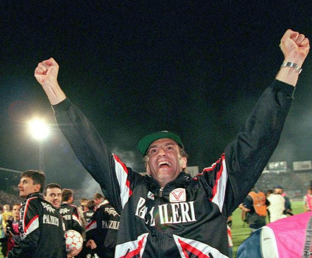 如今在AC米兰担任主席的保罗·斯卡罗尼,就是维琴察本地人。他与石油产业和英美金融圈关系密切,也顺理成章地在1997年成为维琴察俱乐部主席。外资的进驻,正赶上维琴察俱乐部在成绩和荣誉上的巅峰岁月:1996-97赛季,维琴察在“小诸葛”圭多林治下,一路杀入意大利杯决赛,两回合加时赛3比1击败那不勒斯成功登顶。次回合的主场决战,当毛里奇奥·罗西在比赛第118分钟打入决定性的进球,有着将近100年历史的门蒂球场开始颤抖。